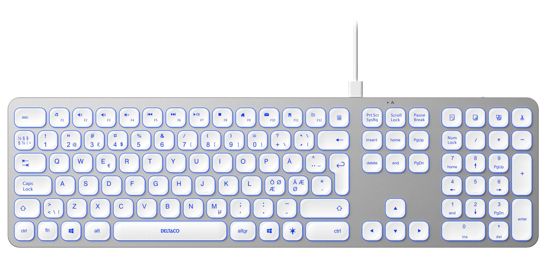 Deltaco Wired Low-Profile Aluminium Keyboard, USB-A/USB-C, bakgrundsbelysning