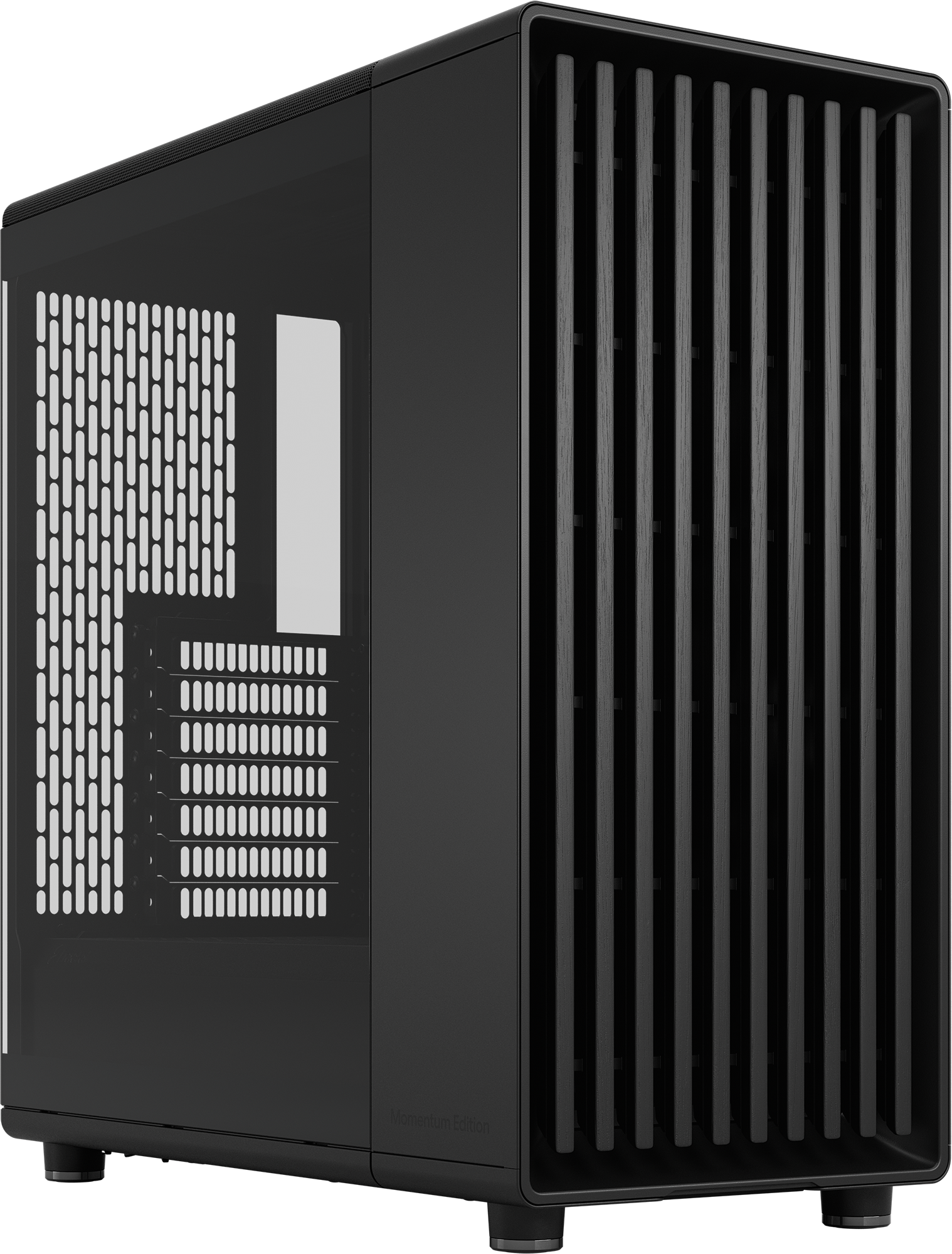 North Momentum Edition is a performance-focused expression of a modern design icon, crafted to integrate seamlessly into the gaming station. Featuring a blackened oak front, dark alloy accents, and three powerful Momentum 12 fans, it delivers a cohesive aesthetic and enhanced airflow out of the box.