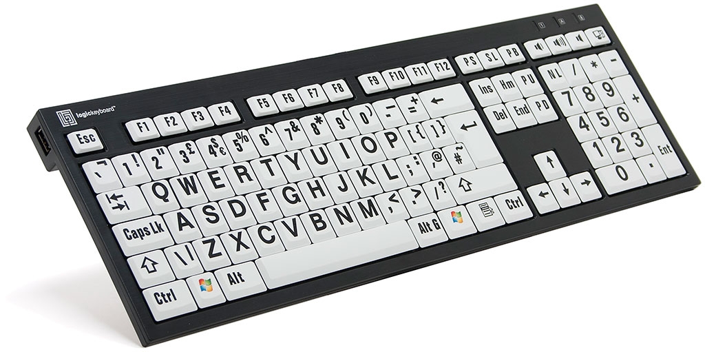 LogicKeyboard XLPrint Nero PC, vita tangenter med svart text, USB-hub, svenskt