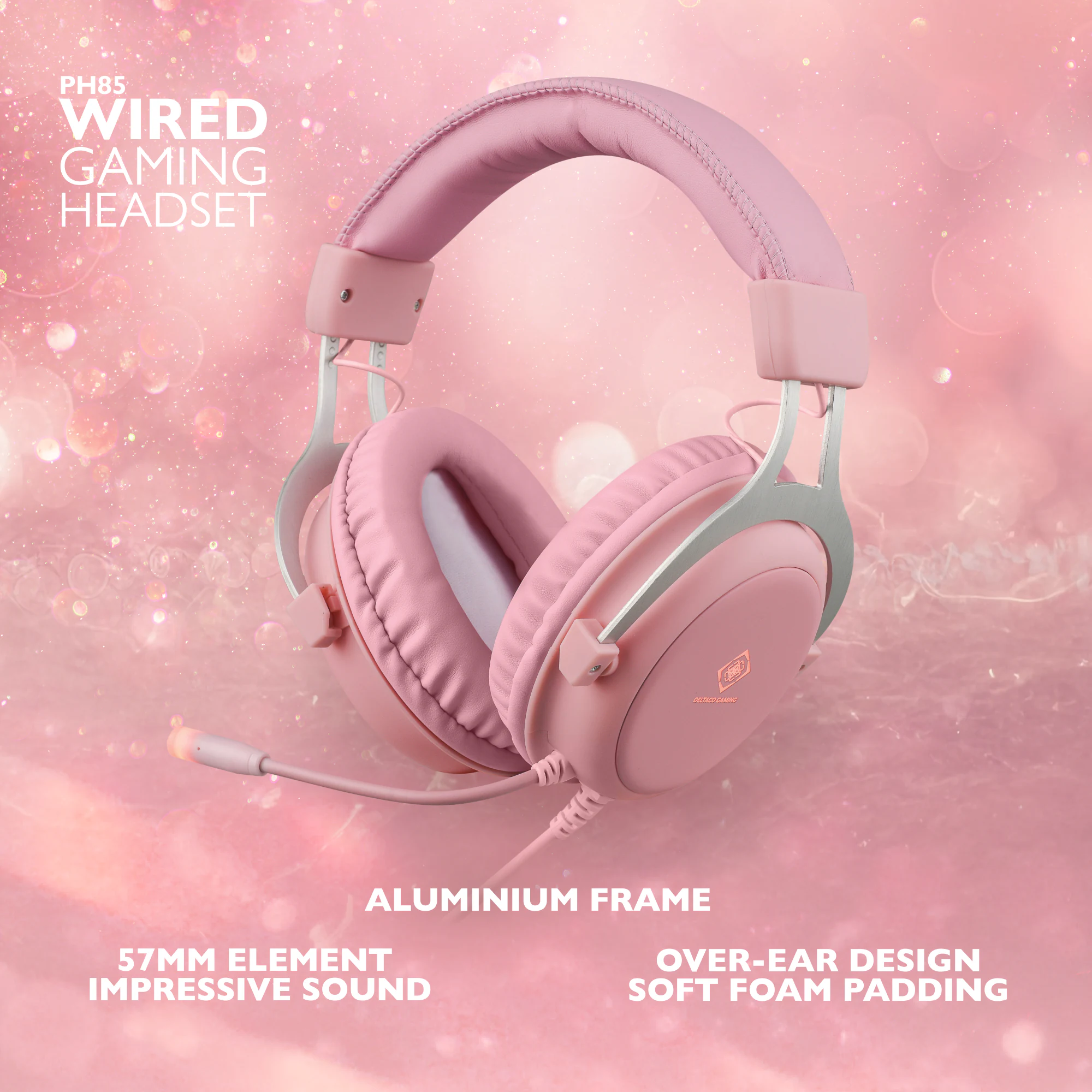 Deltaco GAMING headset, Orange LED, 3,5mm - Rosa