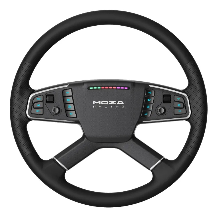 Discover the MOZA TSW Truck Wheel, engineered for an unparalleled truck simulation experience. With its classic four-spoke design and standard 400mm diameter, this wheel brings the authenticity of a truck’s control into your hands. The rim, wrapped in hand-stitched microfiber leather, offers a blend of comfort and grip, while the aerospace-grade aluminum frame guarantees long-term durability. Equipped with customizable RGB buttons and LED lights, it allows for extensive personalization. Compatibility with all MOZA bases, as well as third-party systems through a universal adapter, ensures a seamless fit into any setup. Enhanced by its high-strength steel construction and versatile adjustment options, the MOZA TSW Truck Wheel is the definitive choice for simulation enthusiasts seeking depth, functionality, and an immersive driving experience.