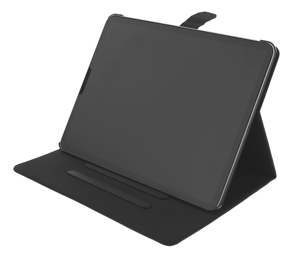 Fodral i veganläder för 10,9" iPad Air-modellen som släpptes 2020. Inuti fodralet sitter ett hårdplatsskal där iPaden ligger tryggt och säkert. Detta skal har även utskärning för kameran på baksidan. Fodralet i sig har även stödfunktionalitet i tre olika lägen så att du på ett bekvämt sätt kan njuta av filmer och serier på din iPad Air 10,9" 2020 års modell.